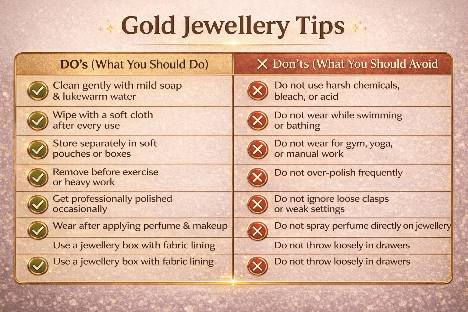 Follow Do’s and Don’ts for Jewellery Care